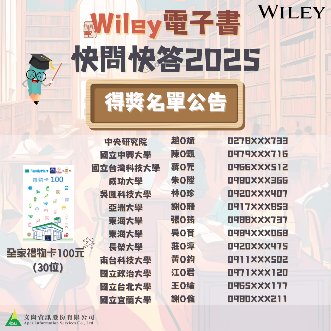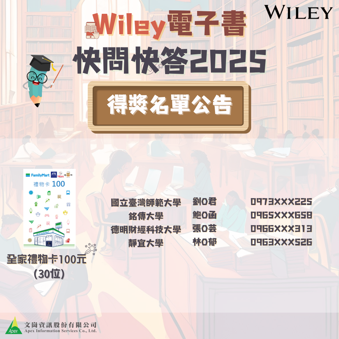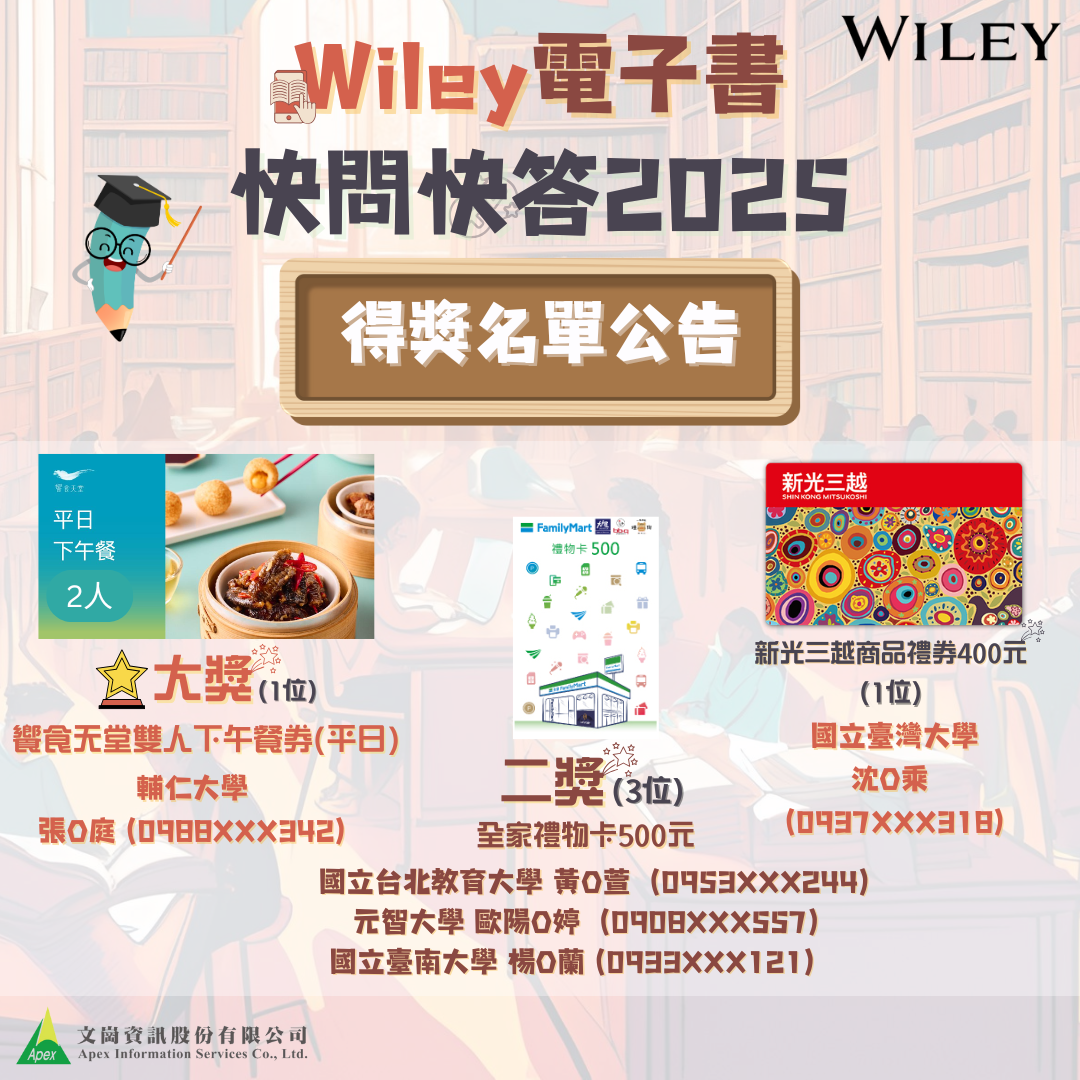🎊感謝大家對Wiley的支持與參與,恭喜以下得獎者!